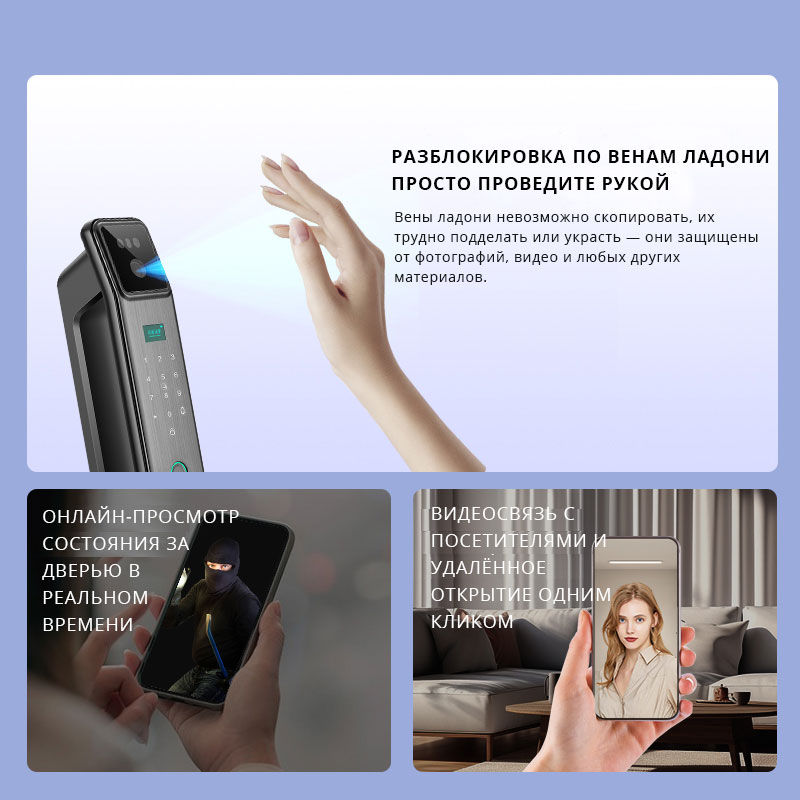 🔒 Максимальная защита — уникальное сочетание Face ID, сканера вен ладони и отпечатков пальцев.
